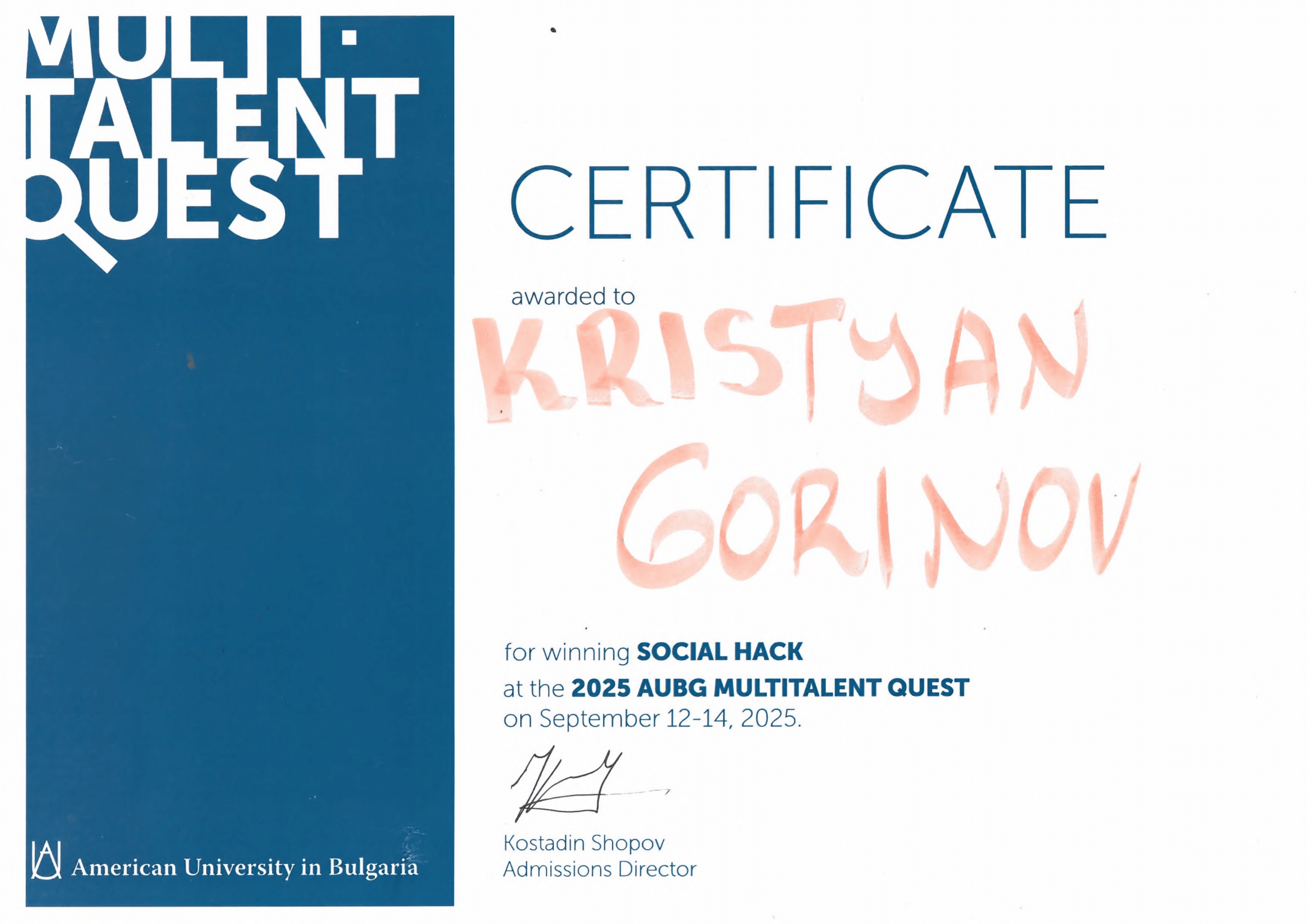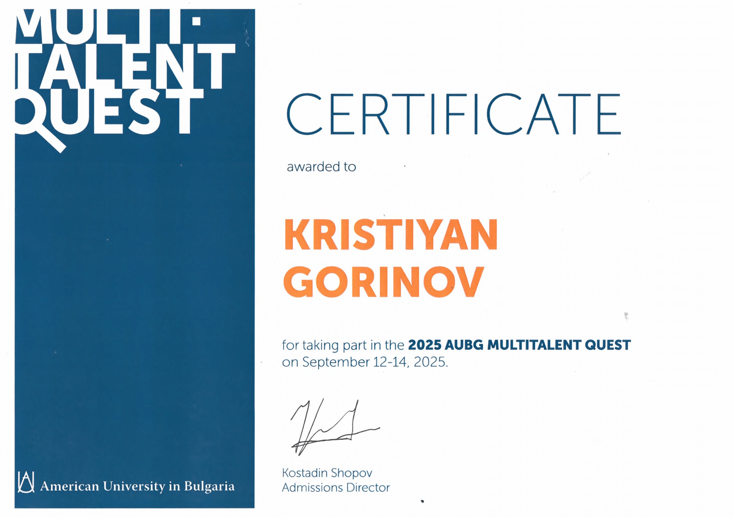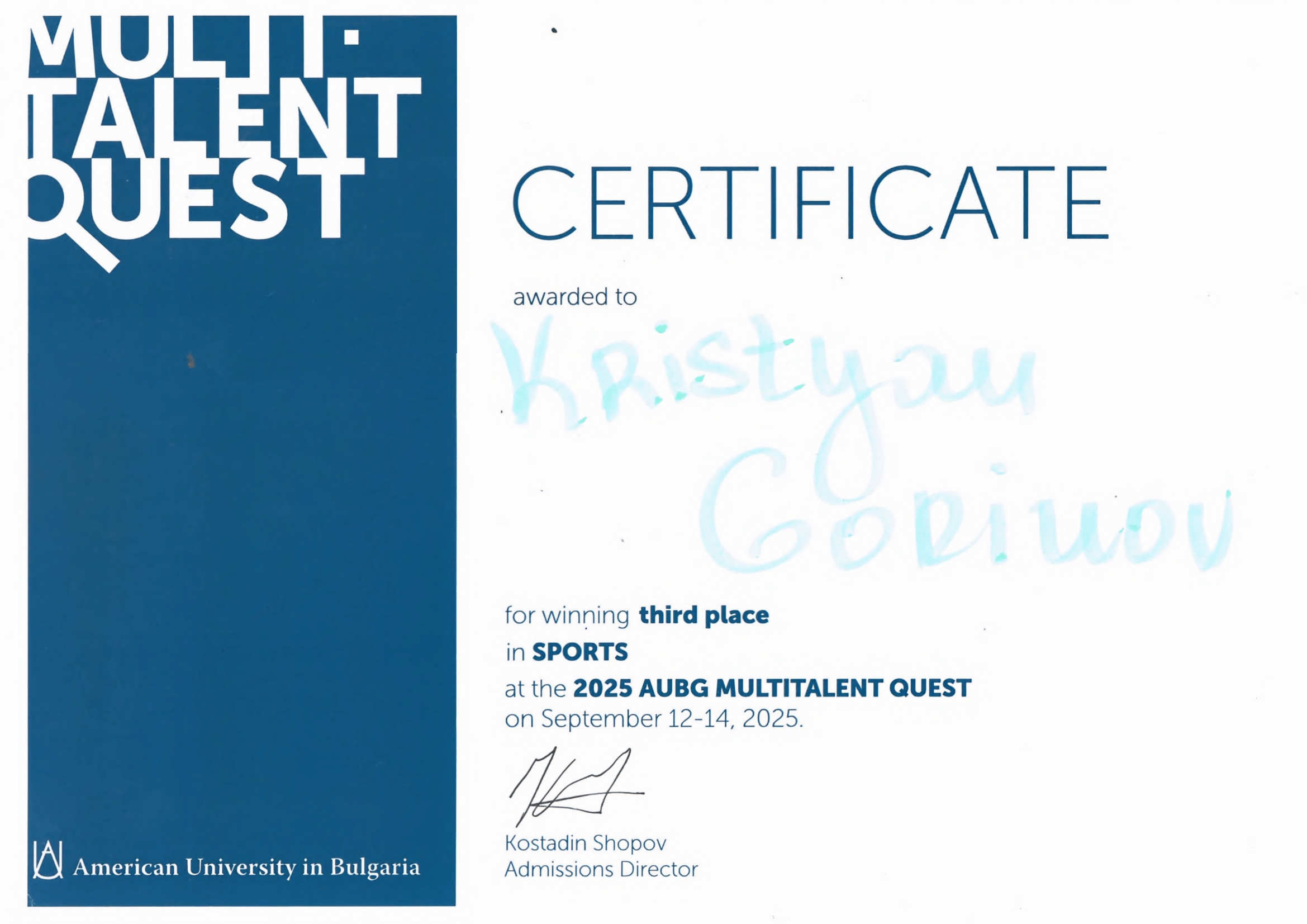 Алекзандър Гуглев – IV „в” клас - второ място, сребърен медал